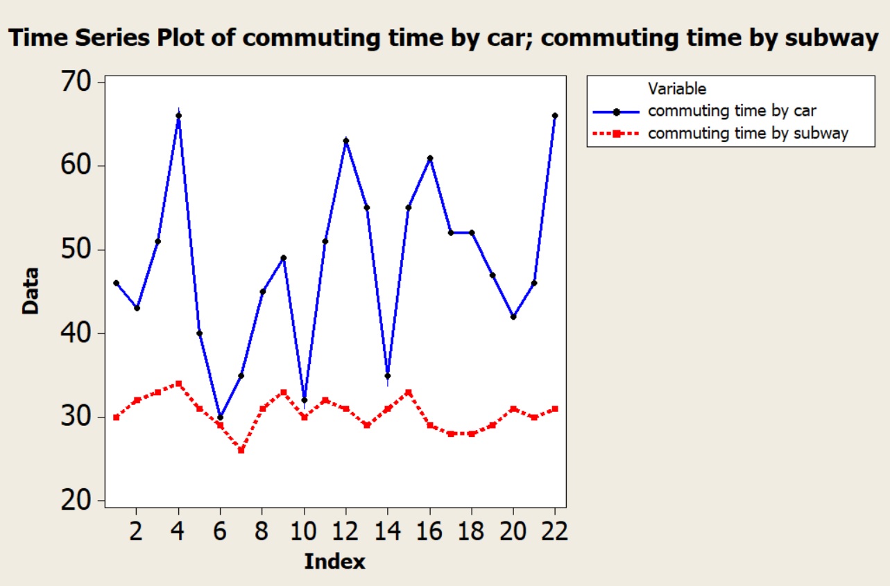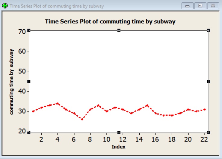 Wykres może posłużyć nam do wcześniej omawianego przykładu pomiaru czasu dojazdu samochodem do pracy.