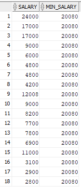 SELECT SALARY, MIN_SALARY