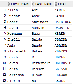 SELECT FIRST_NAME, LAST_NAME, EMAIL