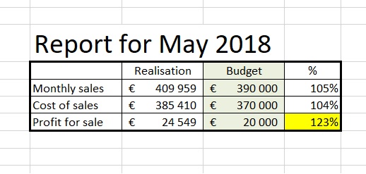 Jest doskonale! Porównanie z poprzednim rokiem również pokazało, że sprzedaż się rozwija i jest zyskowna. Tak zarząd firmy może zinterpretować ten raport.