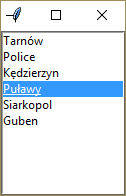 rad2 = Radiobutton(okno,text='Tarnów', value=2, variable=selected)