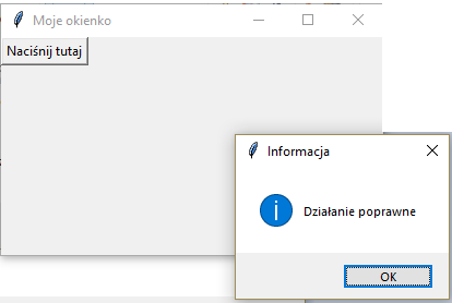 przycisk = Button(okno, text="Naciśnij przycisk", command=clicked)