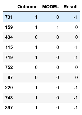 df['Result'] = df['MODEL'] - df['Outcome']