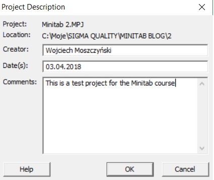 Projekt Minitab można opisać. To bardzo przydatna funkcja przy prowadzeniu badań. Dzięki temu mona zorientować się co robiliśmy, jaki był cel projektu i co jeszcze powinniśmy zrobić.