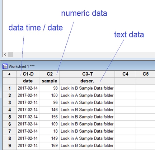 03_MTp. Praca z danymi 12/02/2017 admin Uncategorized 0 Ustawianie domyślnego katalogu. Minitab dopisuje w oznaczeniu kolumn D –data/czas, T – dane tekstowe. Ważne, aby dane tekstowe były zestandaryzowane, tz. żeby tekst był powtarzalny. Minitab potrafi grupować dane wg opisu.