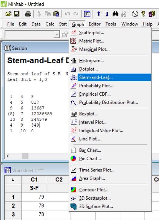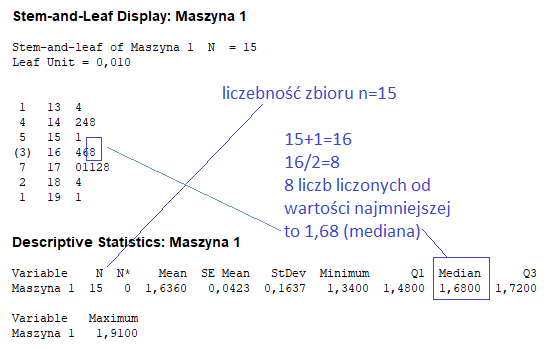 Media to wartość 76 – jak odczytać tą liczbę z wykresu stem and leaf?