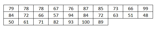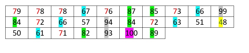 Najwyższa wartość w zbiorze to liczba 100, skrajna liczba po prawej stronie.