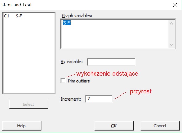 Tworzymy wykres łodygowo-liściowy i dodatkowo tworzymy raport statystyki opisowej.