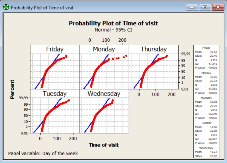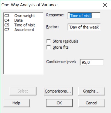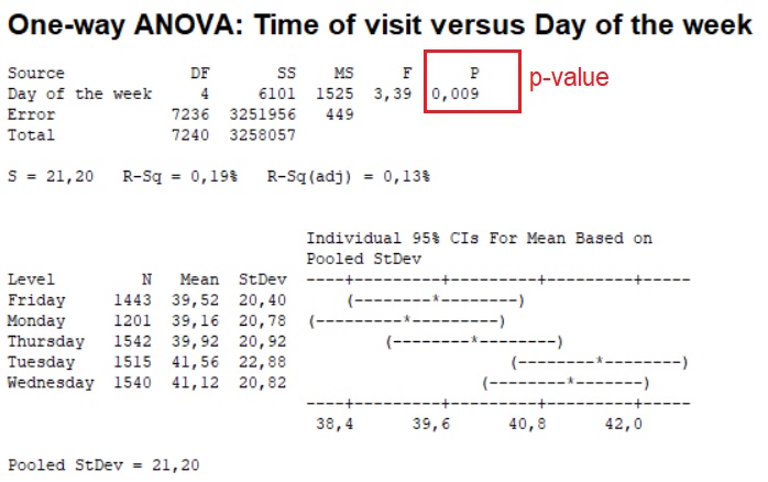 Jednoczynnikowa analiza wariancji ANOVA polega na testowaniu równości średnich kilku populacji mających jeden czynnik wspólny (tzw. czynnik klasyfikujący). W tym przypadku czynnikiem klasyfikującym jest czas załadunku. Wyniki pomiarów z każdego dnia tygodnia tworzą oddzielne populacje, które teraz testujemy.
