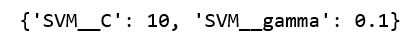 parameteres = {'SVM__C':[0.001,0.1,10,100,10e5], 'SVM__gamma':[0.1,0.01]}